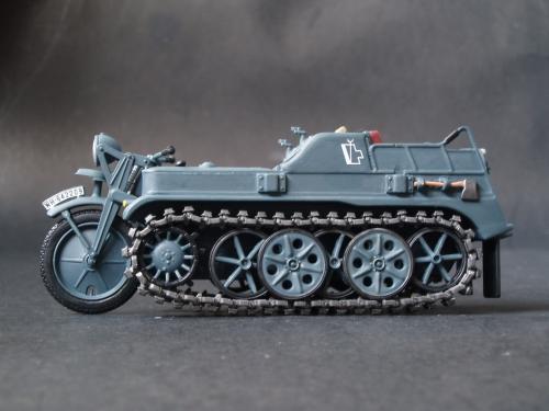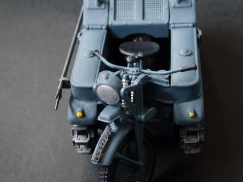 刚做好一个履带式摩托,看到这里有比赛就来捧捧场,不求名次,只求参与。没旧化,怕油画颜料流到里面去搽不干净,就来个清爽风格的。只加了2个251上的仪表水贴,全车德国灰手涂。