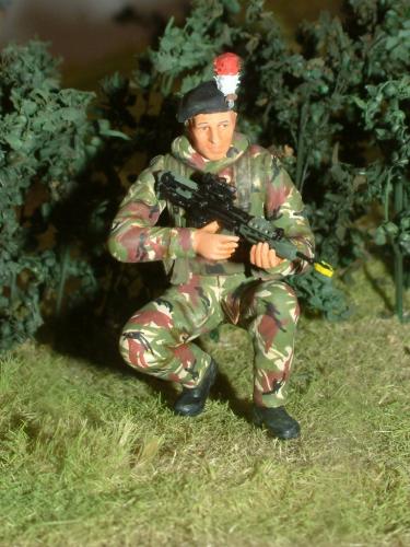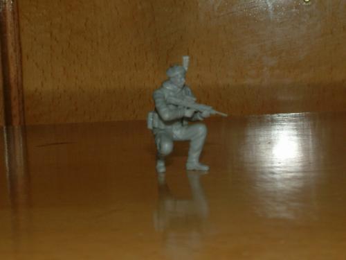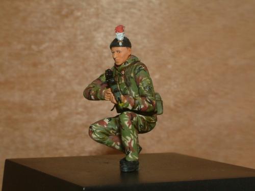 作完德军工兵后还有时间,就争取时间再作一个。英国皇家燧发枪团步兵参考的是《军工厂》的一些资料。用龙的3013沙漠英军改的。龙的老版太肉了没作出什么细节。我觉的贝雷帽上的红白羽毛很好看。尝试用刀在流道削了个“鸡毛掸”效果还可以。还在枪口套个演习用的黄“套套”。。