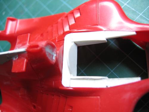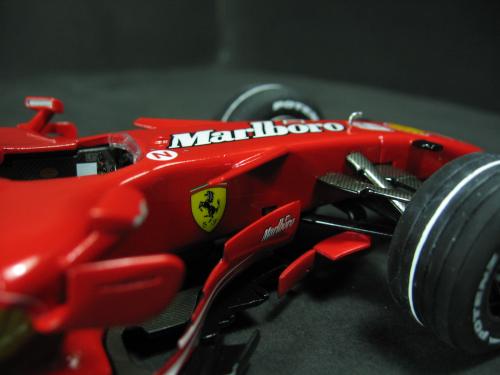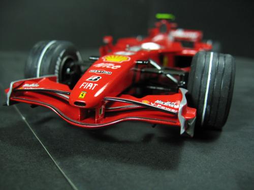 套材用revell 1/24 F2007,油漆使用了Finisher's Mica Red 云母红。利华的这套模型组合度还过得去,但翼片非常的厚,打磨要费一定的工夫。制作时参考了实车图片,做了一些改造,如前鼻锥开孔。制作过程中还发生了意外,某个零件不见了,只有自制。