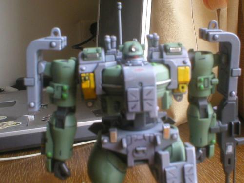 1/144的铁人,追加了细节,如刻划线,柳钉,把手,舱门,反应装甲等等。也增加了部分关节的活动性。虽然没有工程量很大的改造,不过也花费了许多心机与诚意。