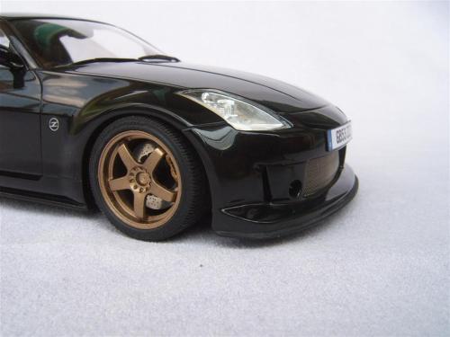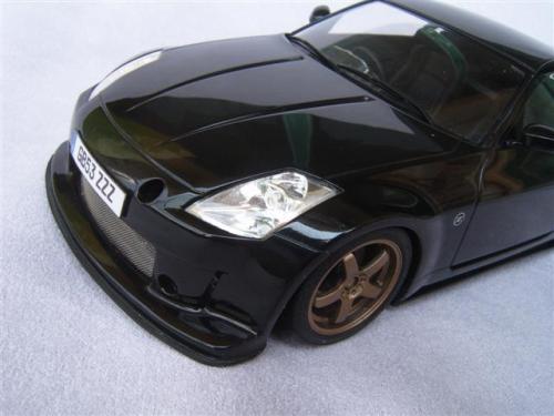 田宫最普通的套件,自制包围和尾翼,改装了天线,车牌,用了一点蚀刻雨刮和刹车碟和路边买的钢网,并且前轮用了前18寸后19寸的轮圈,树脂卡钳。内饰就主要是铺了一些绒布纸