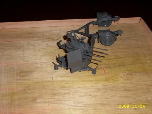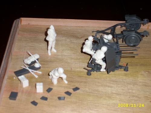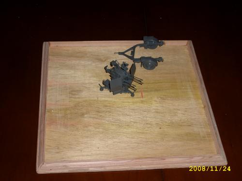 第一次制做模型,以前做过摩托车当玩具摆设.这次偶尔网上查到一些视频,图片.很有启发,又看见有这个网站,也来凑个热闹.我是新手见笑了. 用的是田宫的炮和士兵.