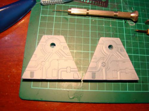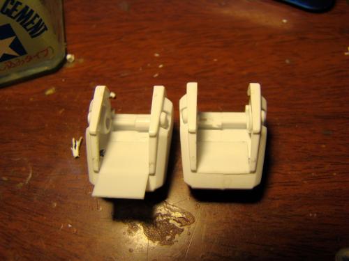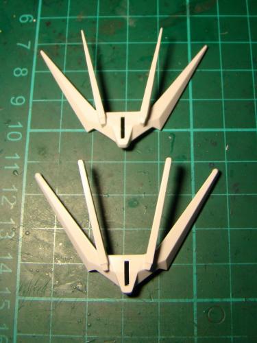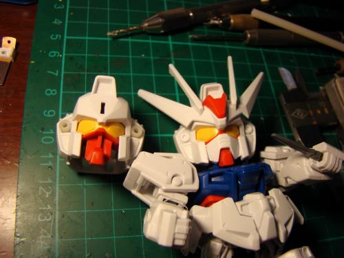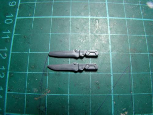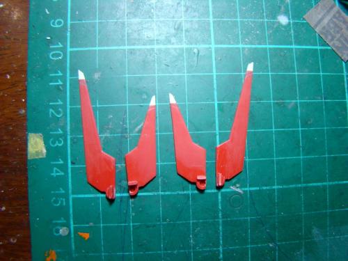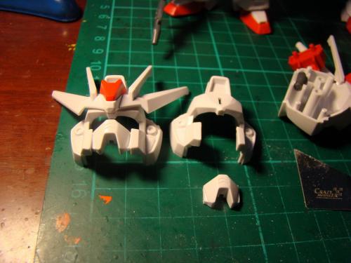 万代SD强袭全装。01880:由于SD强袭的面罩是连在头部的,所以将头部的面罩切下来.以便涂装。 01883 01884:红色下巴部份的卡轴切除,再在头部内部粘上块胶版,这样就可以在头部做完无缝后自由的组装。 01887:把头部的火神炮钻掉,换上直径4MM的圆型胶棒,当然要在胶棒上打上一个直径2。5MM的洞。 01892:腿部的处理,先在内部放一些废料,可以省一些AB补土。(呵呵) 01894:腿部和天线一起补上AB补土。 01895:切除肩部画上黑色的部份,以便无缝上色后再组装。 01896,01898:将补上AB补土的天线磨尖处理。 01902:把腰部用胶板加高2MM,这样看起来身材会好一些。 01903:用502加爽身粉补掉臂轴缩水部份,然后打磨平整。 01906,01908:用蚀刻片切下连在一起的裙甲。 01969:用0。3MM胶板盖上后裙甲的空露部份。 01971:把之前切下来的初甲一一用AB补土补上,然后钻孔,放上直径1MM的弹横,可动性自然大曾加了。 01973:腹部用1MM胶板加AB补土补之。 01977:腹打磨完备,钻上直径1MM的孔,裙甲上弹横就可以卡进去了。 01990;背部的小喷口用寿屋的细节补品换上。 01991:肩部卡轴外露,切掉!用0。5MM胶板盖上。 01993:肩部内侧也用AB补土补之。圆型细节也用寿屋的补品换上。 01995,01998:手掌空露的部份AB补土赐候。然后干了后用手钻打上相应大小的孔。 02017:将腿部份加高了2MM,适当曾高一点。 02019:脚底打孔放入金属喷口,有胶粘上一些细节,使其看起来更精美些。 02021,02023,02028:喷上补土,和原来的样子比对之下精捍了许多。 02108:头部的刻线。先用铅笔画好再刻之。 02122:腿部补上AB补土,和打磨之后。 02452,02456:补掉背包的空露处, 02458:切掉红圈处,以便翅膀的组装上色。 02459,02461:翅膀卡位的切除,翅尖用胶板加长。 02462:为了方便处理无缝,切除了背包的两个“耳朵”,事后再粘回去。 02464:用胶板和蚀刻片制做背包的进气口,看起来没那么单调了。 02453、02455:匙首的处理,切除了前刃形成一定角度,使其更尖一些更像一把小刀。