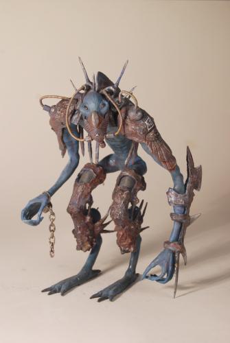 人物全部使用精雕油泥制作,塑造完成后用模王油性漆上色,干扫,渍洗后用色粉旧化。
