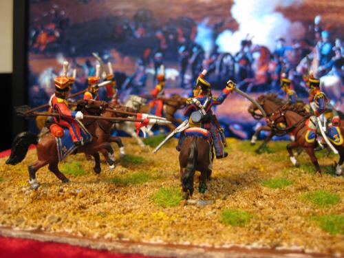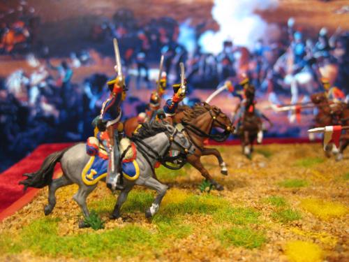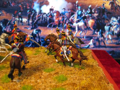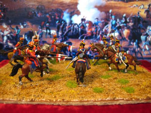 枪骑兵是用Strelets的俄国乌兰骑兵改的,长矛是换过的,鞍褥是纸片改造的。 KGL直接用的意大利的6094。 自己检讨下,红色枪骑兵做的粗糙了,场景地面也很马虎.....