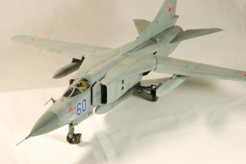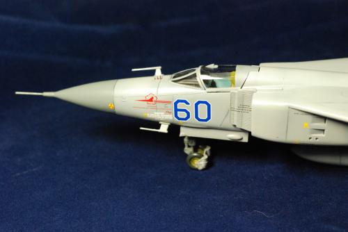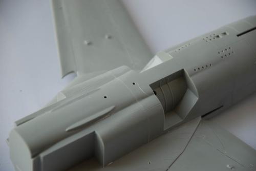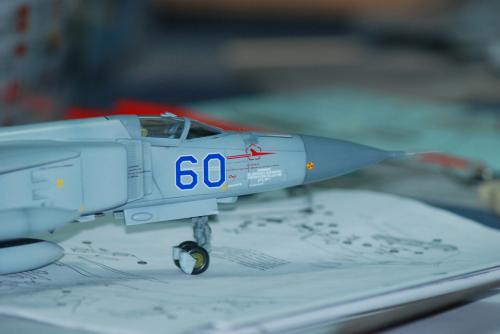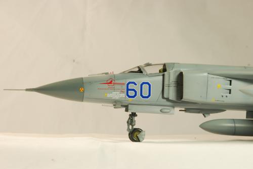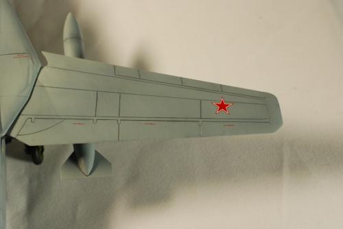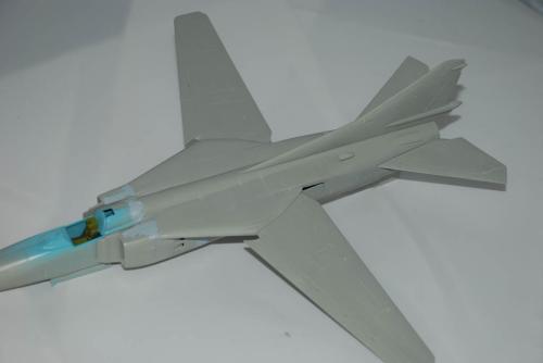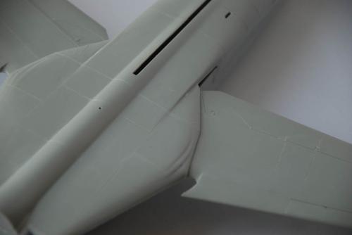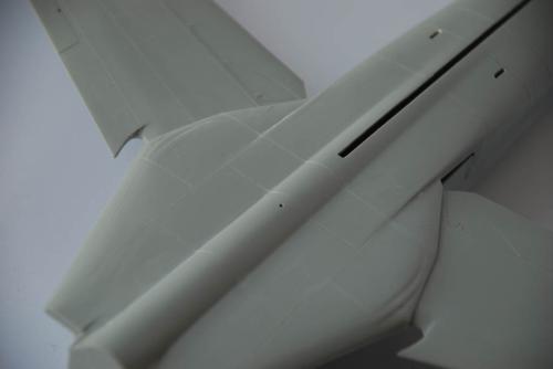 使用意大利1:48套件,凸改凹。增加起落架和起落架管线,用细铜丝改造前风挡前高频天线。组合还算顺利,全身补土,胶带+遮盖液遮盖,可是还是出现了掉漆现象,无奈补喷~~,组装后才发现,腹鳍应该为折叠状态,狂晕。 最后洗渍、贴贴纸、消光。最后完成。