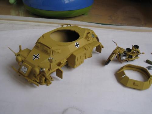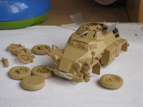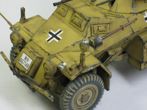 使用田宫35286德军222装甲侦察车套件。自制油桶固定架。