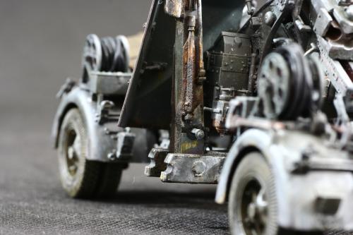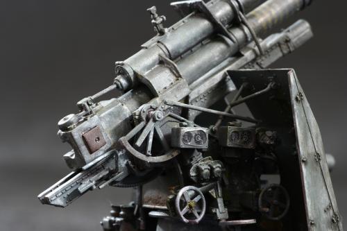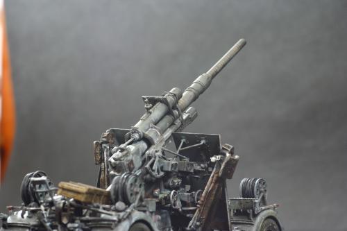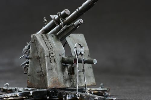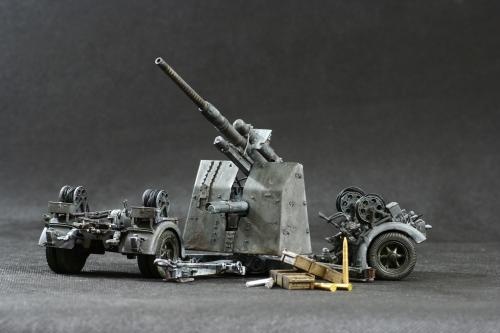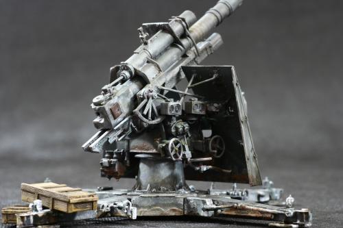 龙的6287(3 in 1),我做的是flak37 过程: 1、组好后,本身件是灰色的,于是掺了红色在500号补土里,全部喷补土 2、先喷郡士的29号防锈漆,然后再喷德国灰(郡士40号德国灰 6%+郡士30号消光白 30%+郡士65号亮蓝 10%) 3、贴水贴,待干,刮出掉漆效果,郡士28号黑铁色全车炮做阴影,包括水贴,做出风化效果 4、部分容易积锈的地方涂上wave的生锈水,待干,油画颜料做流锈 5、水粉洗浅色,油画洗深色,扫银 6、喷消光 7、再用wave生锈水做出新锈效果 8、再用油画洗一遍,结束