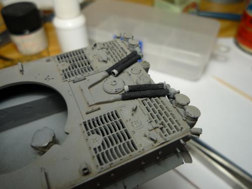 5.车身侧面挂缆具自制 本来没有将这个改造放上计划,但是参考虎式现图发现威望的该细节严重错误,零件里的挂具布局是后期型的,为了里程碑般的标准版,改了!