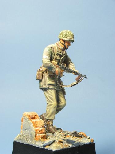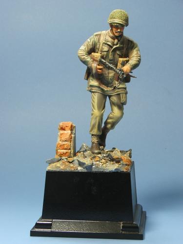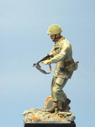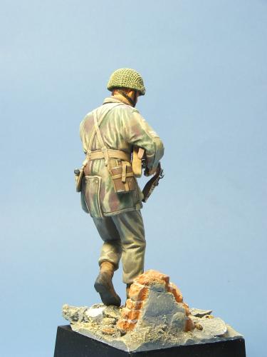没啥好说的,大家喜欢他,我就传他呗. 直做,由于龙的密合度的问题,我只能作成正在上弹枷的样子,这也是无可奈何的事.铝皮+铜丝做枪带,纱布做盔罩,其他没改造.