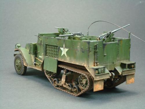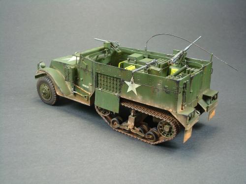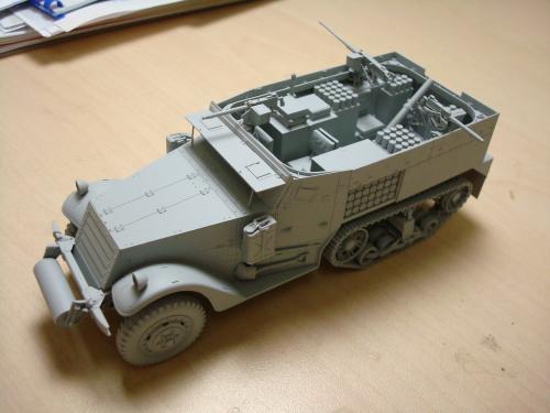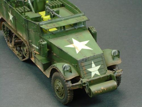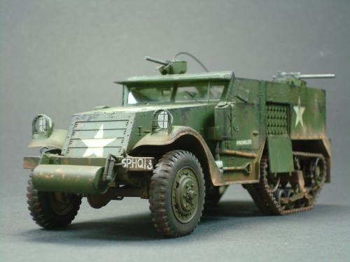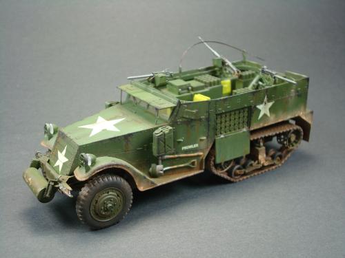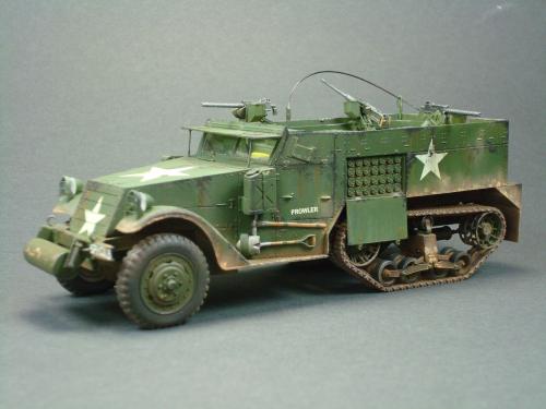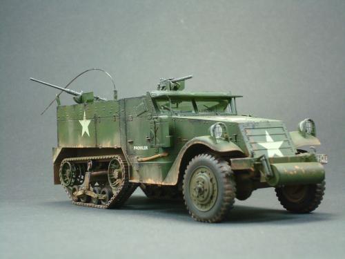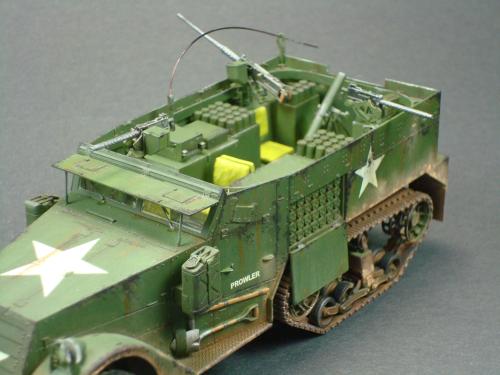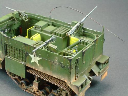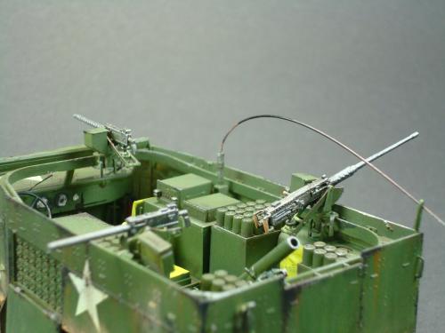 套件:港龙6361 使用套件内含蚀刻片 第一次尝试海绵掉漆。渍洗,滤镜等沿用老手法。 纯粹为了娱乐,左右各加装机枪一挺,并在车体一侧做出弹药箱打开状态。