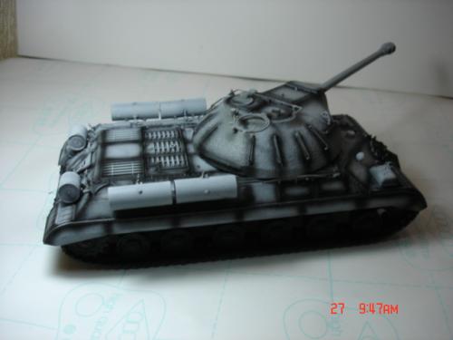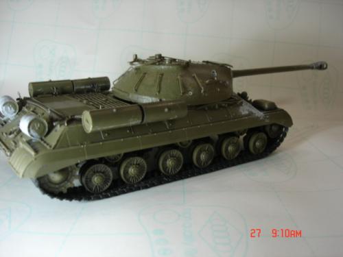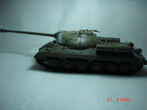 套材: 小号手IS-3m重型坦克 田水 田珐琅 仙盈水 制作过程走的是大众路线 素组 水补 上色 掉漆是海绵加面相笔 渍洗 罩消光 上粉彩。 用胶水配合补土做出炮塔焊接处的铸造感 心得就是:入模不算太久 手法一般 但是有这次比赛的机会一定不能错过 在比赛的过程中能学到很多东西 而且重在参与嘛 只要用心去做就能体会到其中的快乐