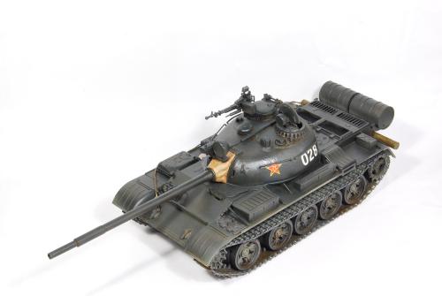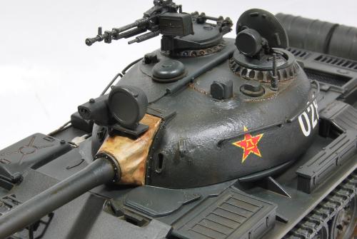 69式为我国自行设计制造的第一代坦克,其中又分为100毫米滑膛炮和100毫米线膛炮两种型号,即69I和69II式,此次制作的69I式采用小号手1:35,芬兰T-55改造而成。使用仙盈、田宫水性漆。 号手此类T55系列,细节一般,组合度可以。重点改进机枪口和观瞄口,追加邮箱管路等。