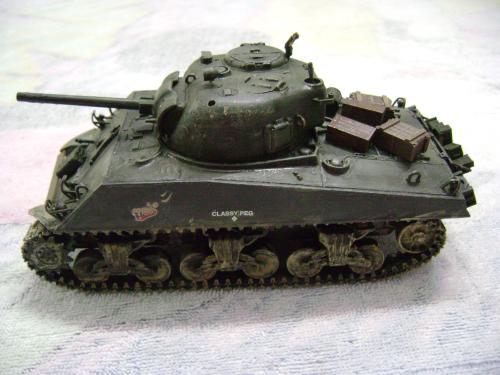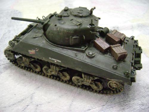 田宫的1:35 M4A3 75MM炮版件。用XF-62加少量X-2(全车手涂),上色完了以后,用土黄扫了好多遍,然后渣洗。全车没做多大改进。(这是我第一次做模型)