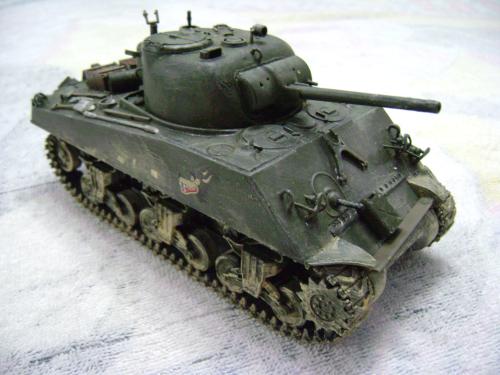 田宫的1:35 M4A3 75MM炮版件。用XF-62加少量X-2,上色完了以后,用土黄扫了好多遍,然后渣洗。全车没做多大改进。(这是我第一次做模型)