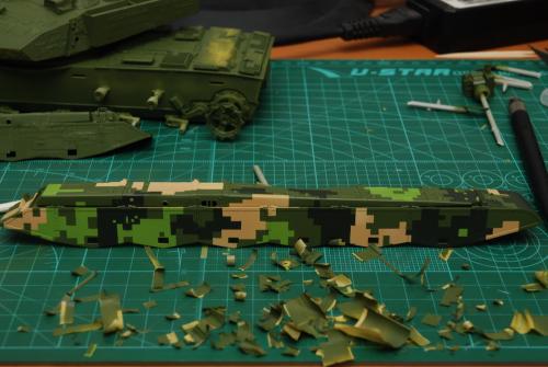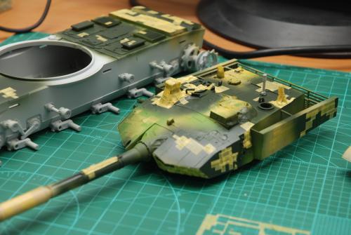 阅兵版99B,HB的套件,根据阅兵实车切除了车尾油桶架,重在数码迷彩,后经很轻的渗线。