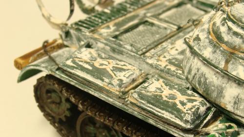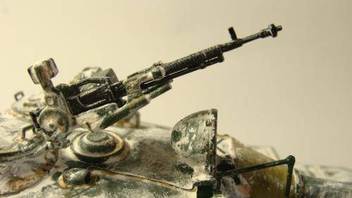 拙作一个 重在参与 希望论坛越办越好! 品牌:西西利 铁丝和易拉罐铝皮追加了一些细节 使用石膏刷白 个人认为跟接近于石灰的质感 路轮和履带突出雪地行走中湿和黑脏的特点 履带换了 做出下垂感!