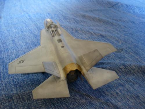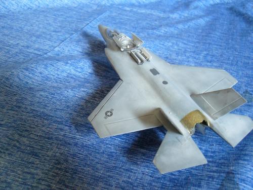 田的东西.组合良好.相对组装比较简单一些.把机翼前缘做少许改造.升力风扇打开状.油漆使用田的.因为是现代隐形飞机,必定先进的可以.所以轻微加深刻线.只做了色差.时间来不及了,本来还想再做一下的...