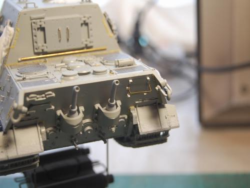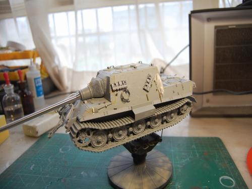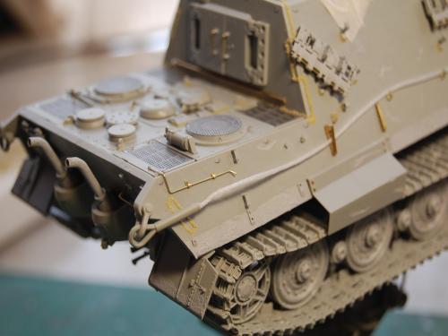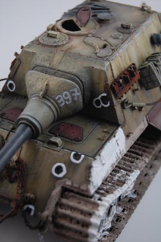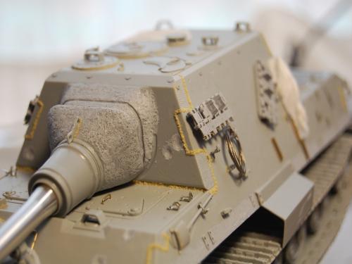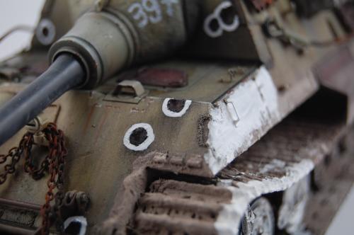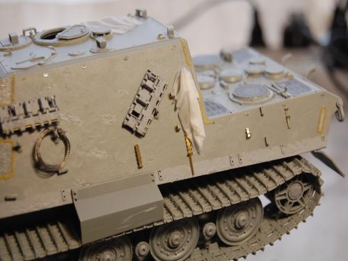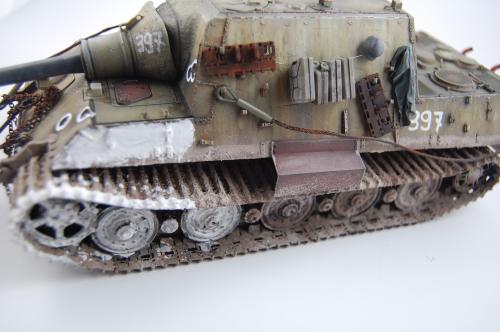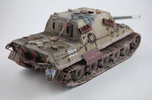 本次制作的猎虎是威龙的6285,此款猎虎组合度和精确度都不错,只是稍微有点小细节不胜满意。 此次参赛的猎虎涂装 是参考了 MIG的 猎虎 ,主要的设定是刚从战场拉下来 准备大修!又或者说是作为靶车,呵呵。 细节方面,用AB补土追加了焊接纹,还有用废弃的PE 做了一些细节上的改动,包括铰链等等。。。。 至于涂装方面,主色还是应用了 德国暖黄,喷涂手法尝试了一下CM大法,还是不得要领,要继续摸索,哈哈哈 泥土 还是用了MIG的天然土,主要表达 干湿,不过后期还是做得不明显。。。 弹坑的制作 ,打磨然后用补土周围蕉一圈。最后用防锈红体现出底色,不过这次拍摄 实在不咋样!以后要多多研究摄影! 好了,这次制作猎虎就差不多这些内容!! 辛苦各位,评审了!