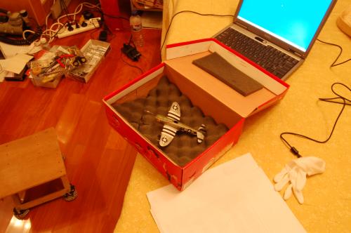 模型的制作中作了一些小的改动工作,一是改了机背部的天线位置,因为原模型板件的位置会导致座舱盖无法开启;二是追加了刹车管线和背部至垂尾的线形天线;三是改了座舱中的光学瞄准器,原板太大,我将它改小了一号;四是镂空了机炮部分。