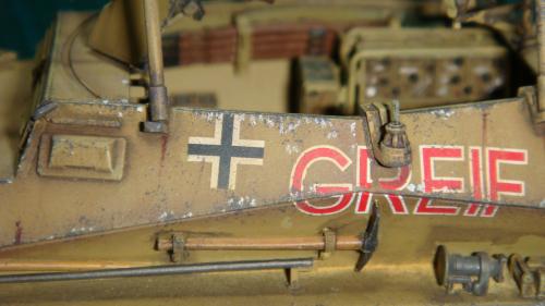 干扫全车突出部位。模仿轻微磨损。接下来用海绵配合笔用德国灰模仿深一点的掉漆。最后用