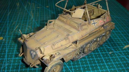 白色轻点德国灰掉漆的边缘。用铅笔摩擦履带和主动轮负重轮的边缘以及车的边角,增加车辆