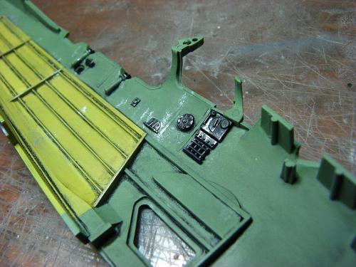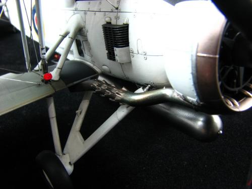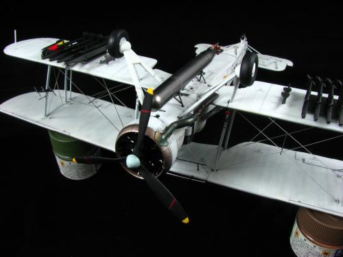 此剑鱼为田宫出品,开模优秀,组合精良,不需要花太大的功夫打磨,但万事都有个意外:机翼部分上下版件结合处开模开的太薄,机翼翼尖曲线大,结合面很容易脱开,建议粘合后再在里面灌点502加强,否则很容易在打磨的时候开裂,下机翼和机身的支撑部分组合有落差,上漆前先要假组修型。如果在肚子上挂鱼雷的话挂架安装点要自己打洞。贴别要注意的是,最后组装的时候一定要把喷的漆的厚度计算在内,否则的话组装会有问题。 漆色直接用了君士的套装漆,在君士的颜色基础上稍微调浅,渍洗消光后颜色正好,如果直接用的话会颜色过深。 喷涂时采用调浅的套色做主色,未调浅的颜色做阴影色,再调浅点做高光色,采用0.2的喷笔沿机翼翼肋慢慢描.....这么多的翼肋.....最后统一消光 排气管的颜色由于没有找到合适的照片做参考,颜色是YY的,最后使用的颜色参考了摩托排气管再适当加重。底色用了SM系列里的钢铁色,然后用田宫的旧化套装(烧灼色)制作效果,如何使用颜色就看个人自己的口味了... 组装时候先组合机翼,机翼组合完后用田宫专用PE拉线,前面组合不好的话拉线会很麻烦.....