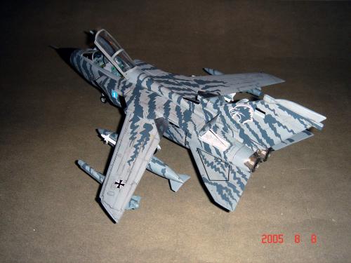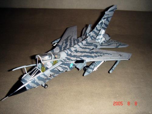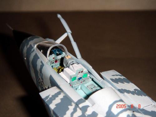 这个虎纹的颜色是比较难做的,做得还是不错的,可惜摄影没摄好,气势没出来,现代战机座仓盖一定要亮才好看,座仓处理还需加强 |