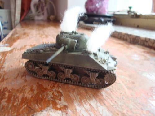 车辆:威龙7250、7305套件,房屋KT板、地台、草皮、乳胶。 套件直做,唯一的改造将挡泥板部分切除。 难点是:徒手喷硬边迷彩,海绵掉漆,用KT板做房屋。 心得:战车旧化逼真,用KT雕刻房屋,喷漆旧化,有质感。