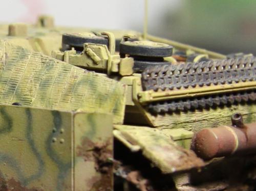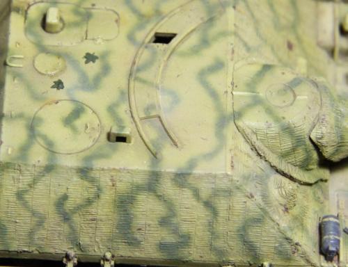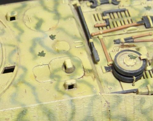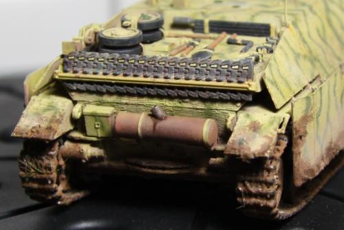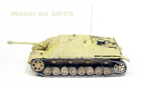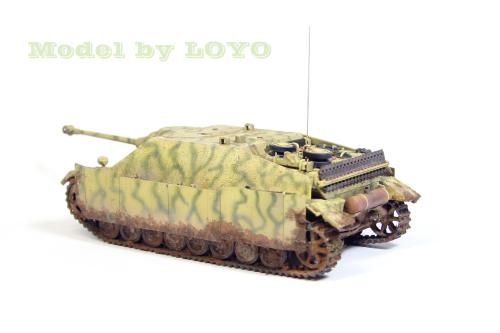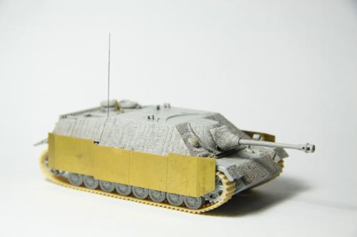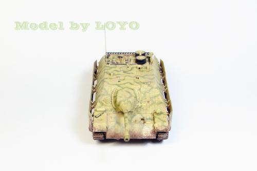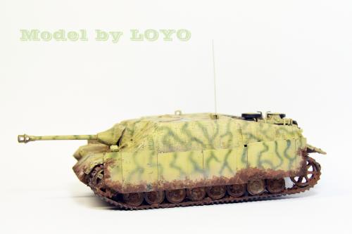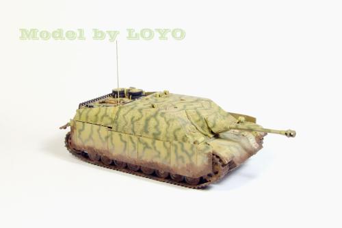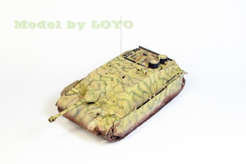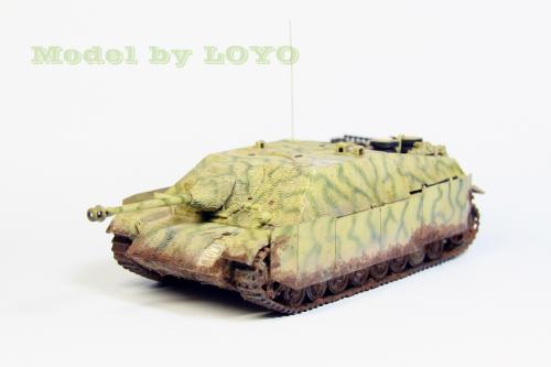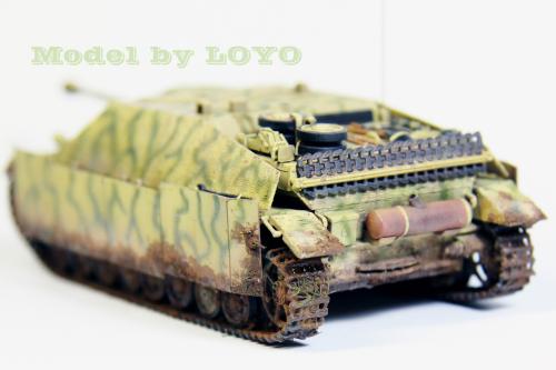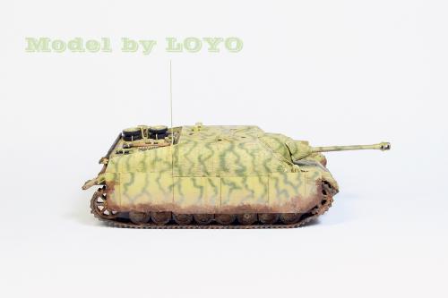 使用了龙的7276 尝试用田的灰补戳了防磁 只可远观不可近观 使用铜丝和蚀刻片边角料改了部分小零件 上色参照116装甲师第228驱逐大队1944年7月下旬在 诺曼底的Argentan 地区的涂装 战车状态模仿盛夏7月 大雨过后泥泞的法国诺曼底地区作战的116装甲师第228驱逐大队的一辆四号坦克歼击车 所以旧化处理上 特别在战车底盘的一些部位 手法比较重