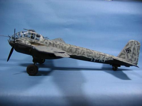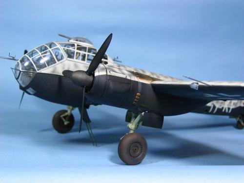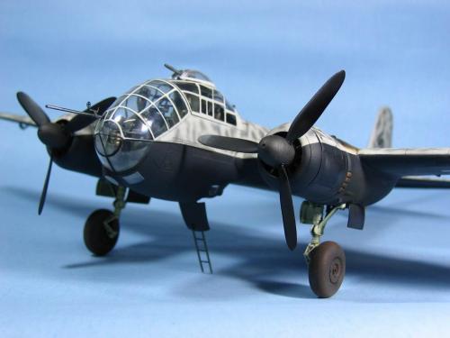 坐舱改的不错,色彩也很适合,色彩上面,虽然是夜间轰炸机,黑色的部分可以稍微做点偏差,可以再用点粉彩修饰一下烟熏和轮子 |