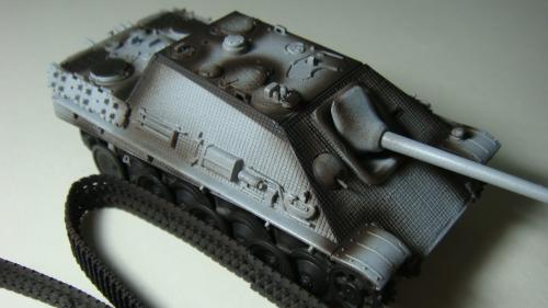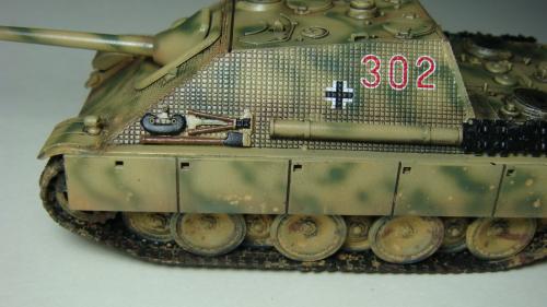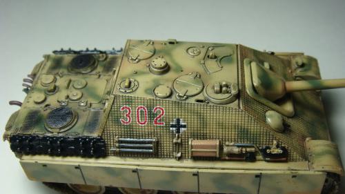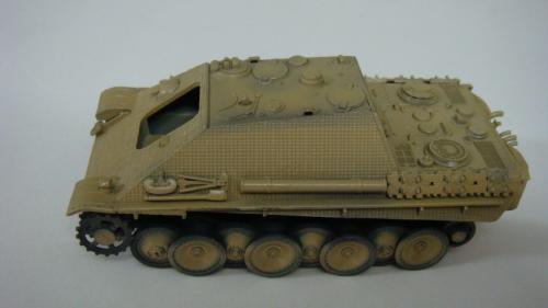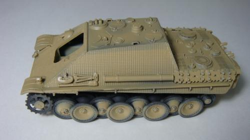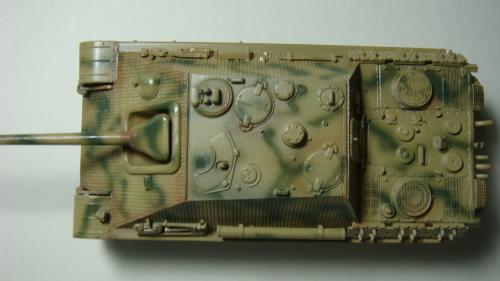 此模型采用了威龙 7241 1/72德国sd.kf2.173"猎豹"战车初期型的板件,基本直做,素组完成之后按照水补土,阴影,底漆,迷彩,画工具,wash,天然土的基本步骤完成。因为比例小,所以在高光和阴影上要加强一些,模仿了cm大法,但是实在是比例太小,效果不是很明显。以后在35比例的车上再多加练习,因为设定为刚出厂不久,所以没重旧化。只是模拟了干湿泥的效果