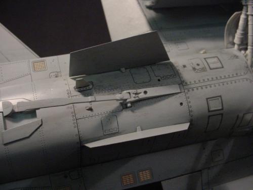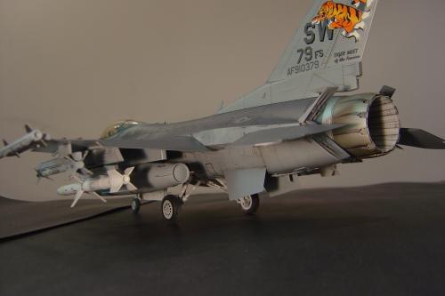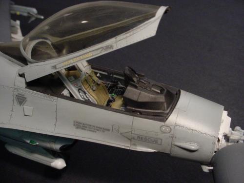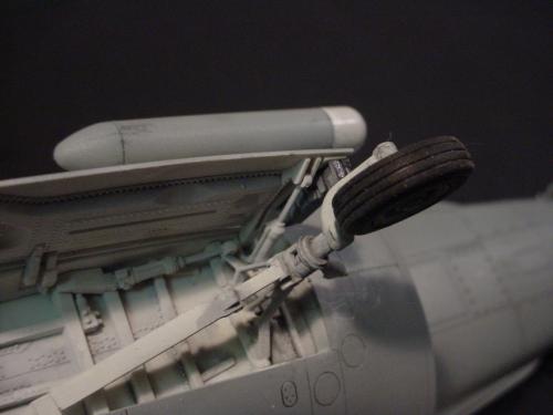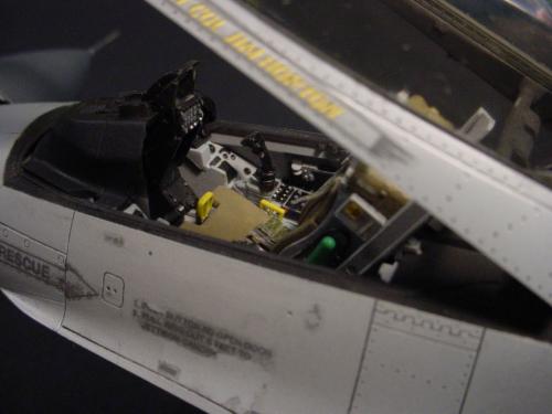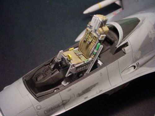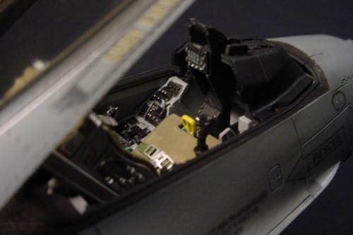 1:32的没有作出气势来很可惜。坐舱内部虽然采用了蚀刻片,不过依然缺乏质感,特别是座垫和安全带,弹射手柄上的黑黄警告色也没有画;主起落架上还留有合模线,发动机作的比较单调;主色上面迷彩的分界有点硬;摄影的技术还可以更提高一点 |