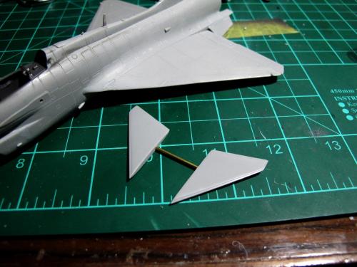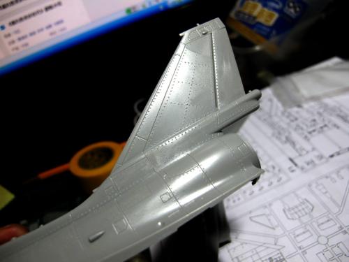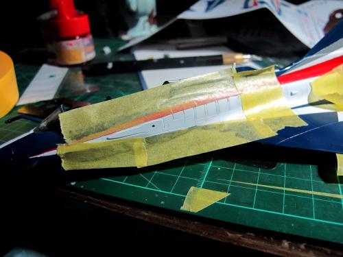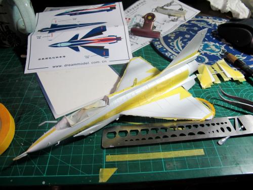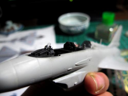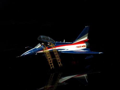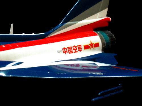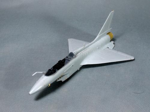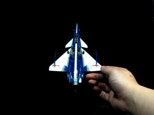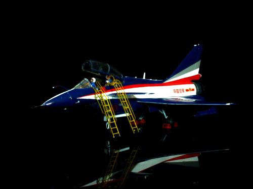 细节:1、全机刻钉 2、起落架加线 3、加放电刷 4、改导弹为拉烟弹 5、按民用方法加光油,打磨膏抛光漆面 6、鸭翼自改做活
