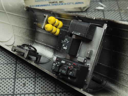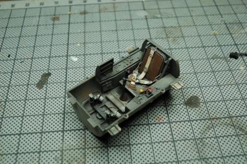 主色使用君士Mr.color的122/123/117喷涂三色迷彩,座舱喷君士116号,轮舱和机炮舱内部为君士8号银,舱盖内部则为君士60号。君士33号黑色和41号红棕色调配稀溶液喷涂后置阴影。