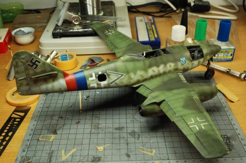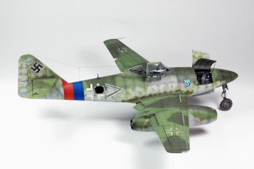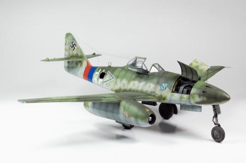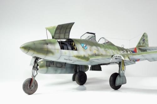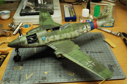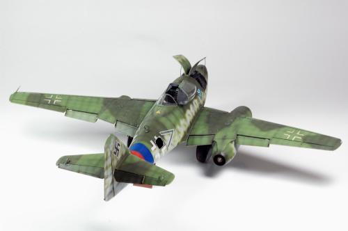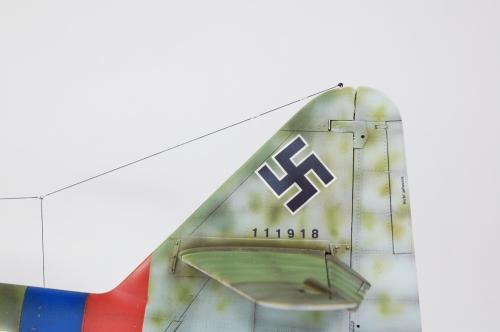 本次制作的涂装采用1945年3月德国空军III./JG 7的Gunther Wegmann中尉的座机涂装。