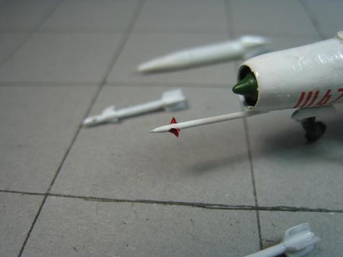 1:144 小号手01325 歼7II 原板件缝隙比较大,刻线深,起落架粗而不准 两翼和机身之间落差1MM 机身打磨了三遍 自制座舱盖 追加液压件,油路管,仪表盘等细节 追加尾部天线细节 用喷罐,田宫水性漆,丙烯颜料分色
