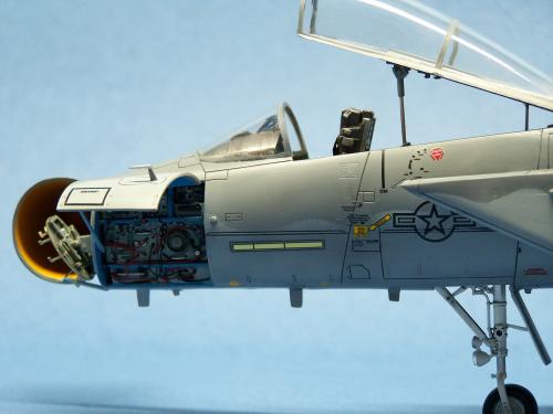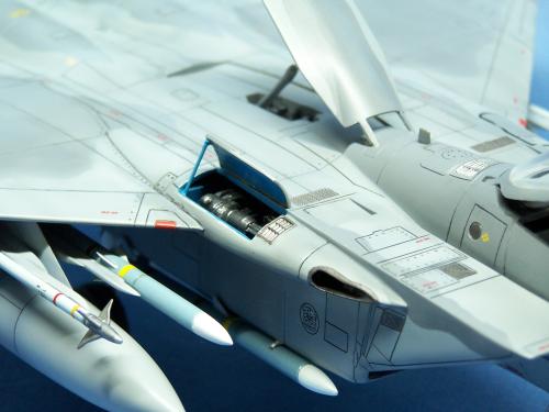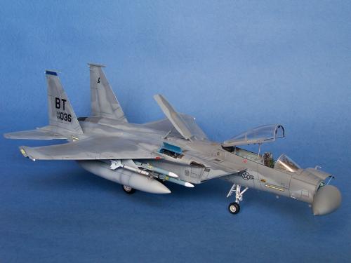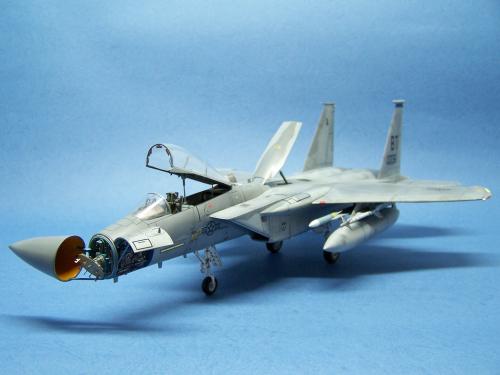 曾经在<模型世界>上看到于狄春先生的F-15E,又在论坛上见到土豆兄的F-15E.真是眼馋啊!也想搞一个.可田宫的实在太贵了!于是就买了一个意大利1:48的F-15C,本来想买E型的,可武器太少了,家里也没有存货.就将就着做C型吧.好在我以前做过一个爱得美的.于是合二为一,把好的版件凑在一起! 首先是把意的座舱换成爱的,因为意的平板座舱加水贴真的很难看,这一点爱的做的很敬业,是立体的. 尾喷也换成爱得美的,相信很多同好都知道意大利的尾喷严重失真! 由于我买不到蚀刻片,所有的小东西都是自己做的,机首雷达舱是用塑料板做的,用铜丝追加了电气线路.雷达天线是用气管接头里的卡簧片做的,反光镜是用铜皮自己裁切的.航炮是用废旧的电气开关用锉锉出来的,所以有很多不到位的地方.用针管替换了顶部减速板的液压杆,这样有看头了很多!座椅上的安全带也是用铜皮做的. 另外,我把爱得美F-15上的麻雀改成了AIM-120,是不是很现代! 涂装没有什么好讲的,做成标准就行了. 我看到网站有比赛后,模型已做好了90%,所以就没有没上色前的照片.请原谅! 我拍的照片实在不怎么样!请各位大侠将就看吧!有空还要好好向各位学习!希望不吝赐教!