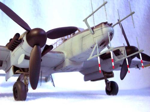 套件是PROMODEL的,和利华同样的版件,48比例。套件细节完美,组合度优良,唯一不足的是水贴——过于薄和柔软。使用了标准的RLM74、75、76迷彩。机头的天线因为定位孔不明显,又只能在上色后总装,组合上费了不少时间。