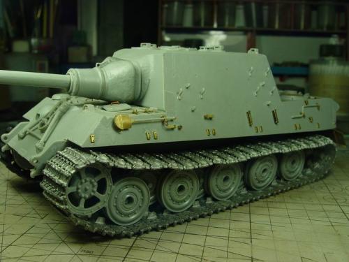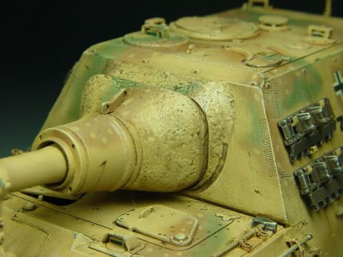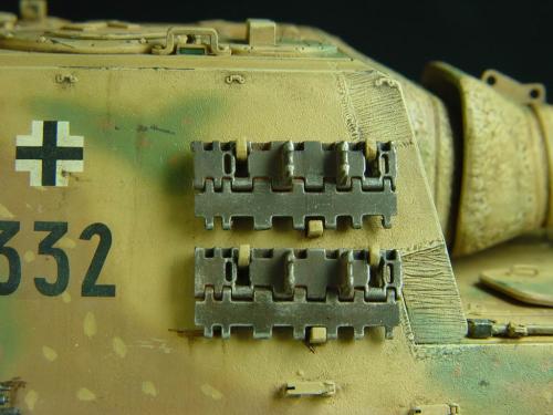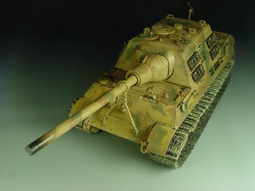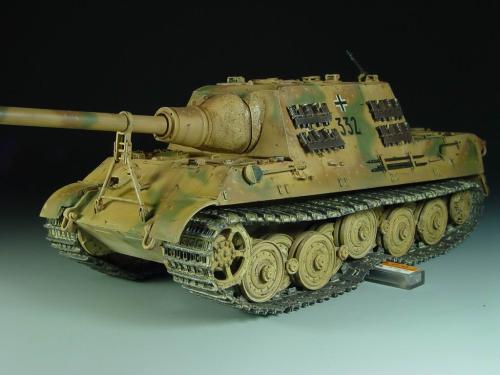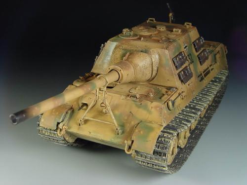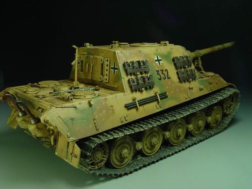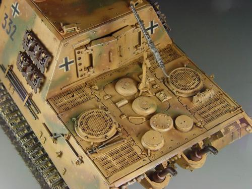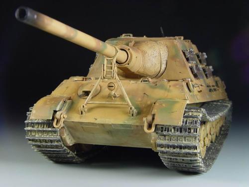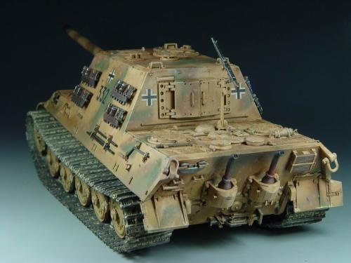 一借季赛完成的阑尾啊。套件用的是龙6050这一经典作品(购于2002年),一直舍不得做,就是怕做坏了。改造用了KMY的虎王片子和挡泥板,效果还是不错的。最费时间的是把履带用手钻改成活动的(一贯作风,呵呵),驱动轮,主动轮也是活动的,拿在手上把玩,心里舒坦啊!