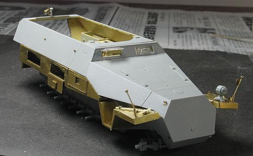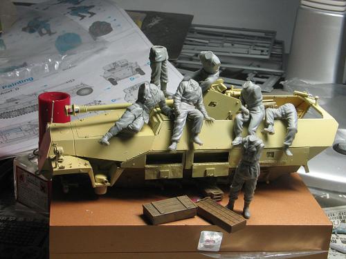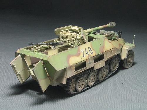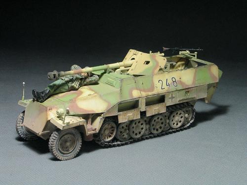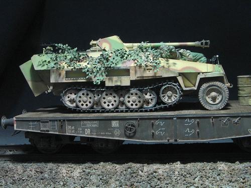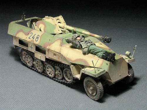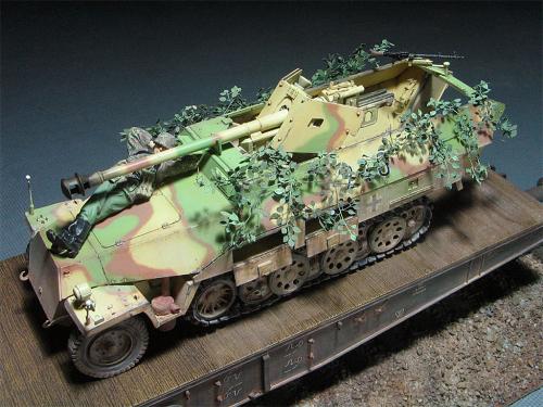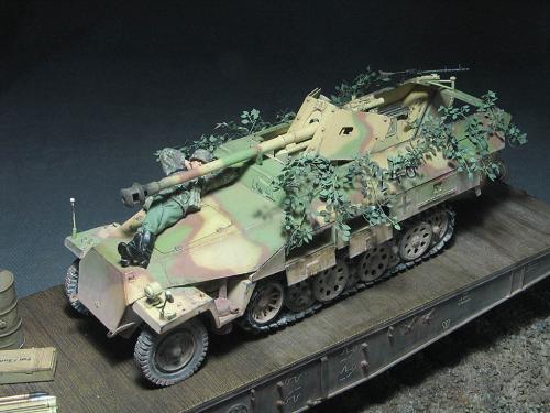 现在毕业了,也非常顺利的工作,可自己的时间也是越来越少,2个月的时间做完这个模型实数不易~~~~~废话就不多说了。 套裁: 龙的251/22。组合度不是很好,比以前的251/C还差。没有使用金属炮管,原因是金属炮管喷漆容易掉,所以未采用。不过车辆示范宽非常的不错。 改造件: 沃雅使用改造的部位有树脂轮胎、车内防滑板、仪表板等内部改造。 狮鸣的PE只采用了车体两侧的工具箱,机枪支架,总体说来感觉不错,但制作较为复杂,不过也符合偶的BT心理,(那么贵的PE总要让我玩上几天的把,不然就太不值了哈) 地台: 本来在木子飞跃那里定了一套铁路平板(现在他还有一套,就当是给他做广告把),可由于工作的关系没时间做了,最后只有找潘赢借了他的平板,(平板很漂亮,所以没怎么动,知识为了配合251/22简单的做了洗和扫)在这里再次的感谢木子和智利俱乐部 旧化: 只是简单的洗了洗、点掉漆,用了MIG天然土,非常的好用,