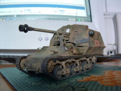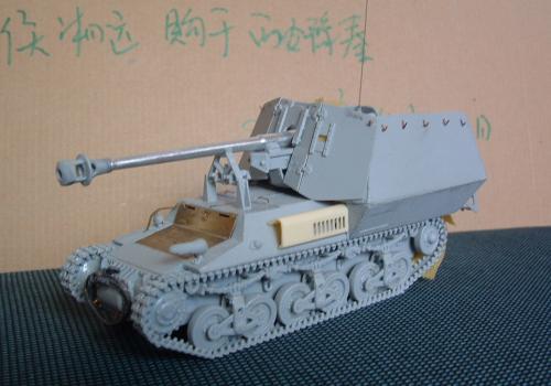 实车资料:Marder I,为德国缴获法国罗林装甲车改装而成,主要装备西线德军,这款模型就是d日21装甲师得黄鼠狼1型。 模型介绍: 这台Marder I 是2002年4月份托人从美国购买的。这个模型是全塑料拼接模型,为法国IRONSIDE出品。自行加装了金属挂钩、把手等。 由于今年自己工作和家庭的事情比较多,所以就拿这个老作品参赛了! 目前本人正在制作Marder II D型,希望大家多多给与帮助!