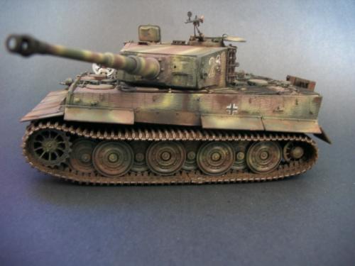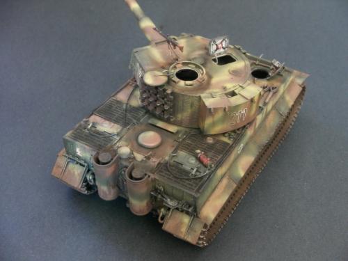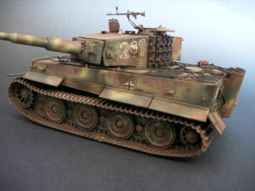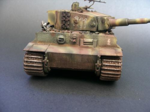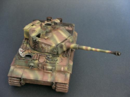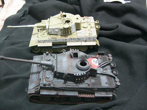 这次使用的是战鹰在去年出的虎1后期型(350790加上KMY92350110的PE,此车体细节丰富,组合度精良,只差在那KMY的PE是配TAMIYA的,所以许多地方不合。 上色前先上水补土,再调出易地种偏暗的红宗色(徳军在涂迷彩前都回上这种颜色的防锈漆),然后就开始上SS102。PZ在诺曼底特有的迷彩,和以往的三色迷彩不同,它的主色是橄榄绿而不是暗黄,把调好的颜色喷好后就要开始旧化了…… 旧化上也没什么不同,摅净-洗-扫-色粉-消光-完成!