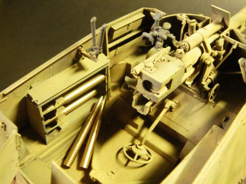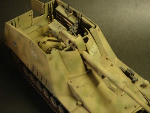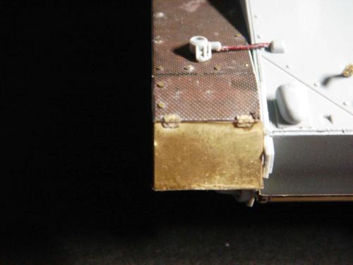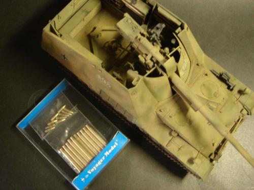 这是原来准备参加上一季度的比赛的 但中途因故耽误了 所以就拖到现在 几经反复 差点成为烂尾 这次使用了狮鸣的蚀刻片(因为沃雅的没有) 考虑到要求用到沃的补品 就选用了最近的沃的新品pak41/43金属炮弹 不过需要提出的是沃的炮弹明显有些长了 装在弹舱里两头已经顶到头了 希望沃雅求证后考虑改进一下 制作上没什么特别的 参考了澳大利亚一个高手的作品(同样使用的是龙的套件和狮鸣的片子) 值得一提的是这次的履带是我加入手钻党的处女作 很是辛苦但也颇有乐趣 最后时间完成的 多少有些仓促 希望大家喜欢
