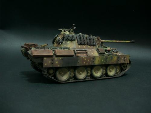 使用的是港龙6160的黑豹A型+沃雅的发动机防护网,由于买不到更多的蚀刻片,所以没有作太多的改造。 我把被景设定在1945年匈牙利的镇上,由于是刚到战场上的,所以也没作啥旧。其制作灵感来自一张杂志上的照片,一辆北欧师的黑豹A型在巴拉顿湖旁奔驰。由于高中课业的烦忙,所以没有足够的时间来制作,还请各位看官多多指教!