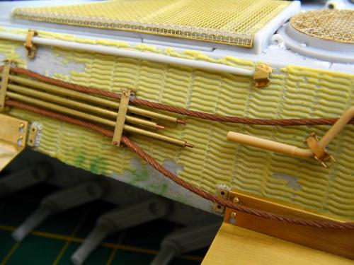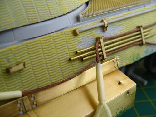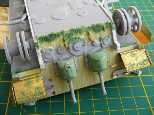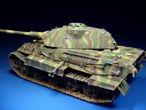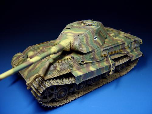 使用的套材: 这次制作主体是龙的6189保时节炮塔之虎王。其中车体两侧的钢缆,侧面的群板以及炮塔后门上的手枪射击口栓塞均为Voyager Model的模型改造补品。整个模型还用到了其他蚀刻片厂家的部分剩余零件,同时使用了Metal Hobby的金属履带。 改造要点:在模型组合阶段进行的改造如下: 1)可活动的悬挂结构 2)全车细节均进行蚀刻片改造 3)坦克外部所有可活动的门,都改造为活动结构。(包括炮塔顶部的抛弹口/信号弹发射口) 4)全车铺设水泥装甲,为了打破单调,做了适当的脱落。炮塔首上水泥装甲的防磁纹理参考了一辆实车照片。 5)所有明显的地方都追加了焊接痕和气割痕。 6)前后挡泥板都做为全可动结构。 7)炮塔后门是全车改造的重点,完全按真实的结构复原,同时改正了和后门连接的装甲的厚度。(注意!通过结构图可以看出,此装甲是“镶嵌”在炮塔后装甲上的,即此装甲板裸露在外面的厚度仅仅约40mm,而实际厚度为80mm,只有在后门的开口处断面才可以观察到。 8)扩大了车长观测塔上的潜望镜窗口,原件太小了。 9)打薄了排气管口,同时对保护其的装甲缸“缺口”形状进行修正。 8)追加车头2侧的终极减速器的保护装甲的焊接痕迹。 改造点未能尽述,请参考“裸照”。 全车PE使用乐泰胶水粘合,部分零件考虑了强度问题,结合使用了焊接技术。如:车体前后挡泥板为全焊接结构,铁锹头的固定具,千斤顶的固定具等。虽然焊接颇费时间,但是完成后的效果和强度都是很让人惊叹的!炮塔后门为全车改造的重点,施工参考了一张后门的结构图纸,由北京杨林提供,在这里再次对他表示诚挚的感谢! 涂装设定:制作的历史背静设定为1944年投入在法国战斗的503重坦克营的保时节炮塔虎王。涂装设定为3连比较有代表性的“虎纹迷彩”。当年的T社和福万都用这个迷彩做了封绘,可见其魅力。当然此迷彩的难度也比较大。所有颜色均使用GUNZE的油性涂料,用500号水补土打底。按照真实的涂色顺序,先喷涂暗黄,然后做暗绿和红棕的迷彩条纹.防磁脱落的地方采用了浅灰色打底,原因是参考了大量历史图片和一些艺术效果图.由于赶在比赛结束以前提交作品,所以后续的旧化细节和拍摄方面还略显草率,整个后续的涂色和旧化用了7天的休闲时间,实在是很赶.在车体的考证方面其实参考的是324号实车,但是苦于龙没有给这个水贴,同时我也按照自己的理解在迷彩纹路方面加进了自己的设计,也许这就是模型的魅力!最后索性放弃了车号.