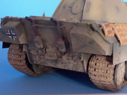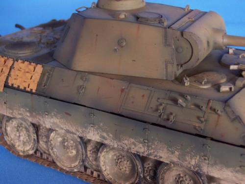 制做较工整,但涂装的着色较重,同时履带旧化较失败,同时掉漆和锈痕失真。摄影方面光源的变化较明显,使得作品出现了不同的颜色变化。