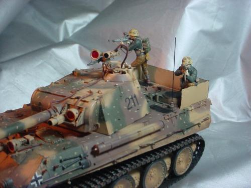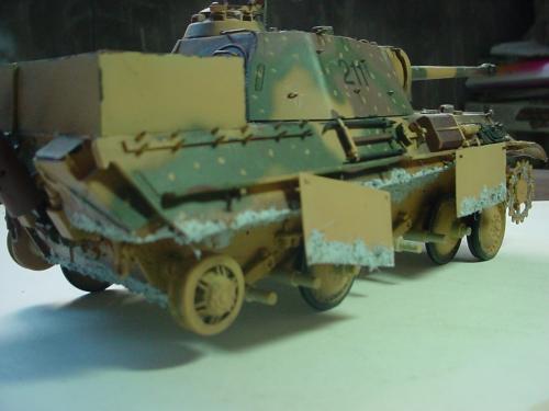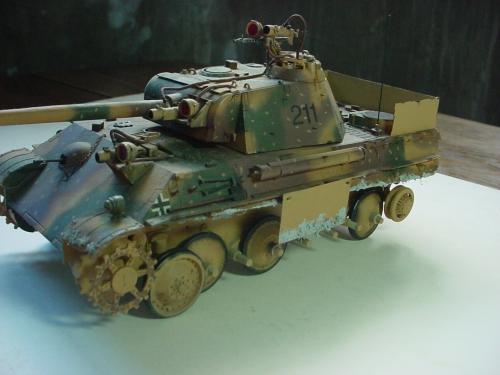 威龙的产品,自制了侧裙板和动力室上的装甲围栏,履带是田的原来的钻成活动的换在田的豹G上了.还用二极管做了红外投射灯做好后只有驾驶员的灯还能亮了.