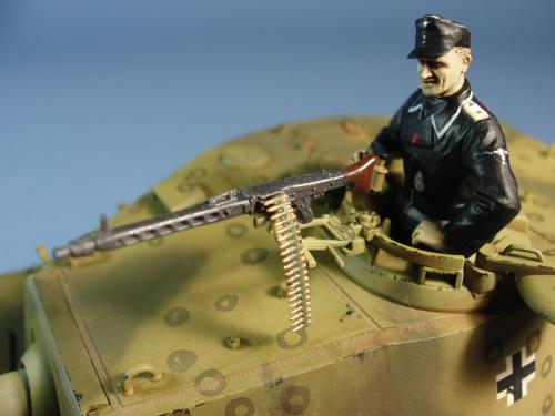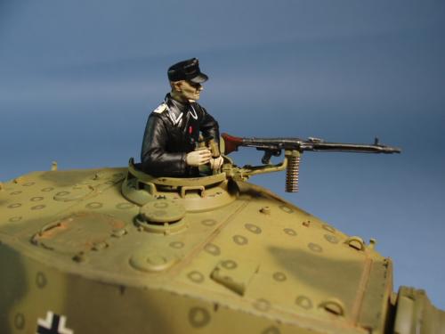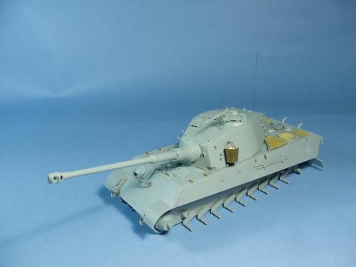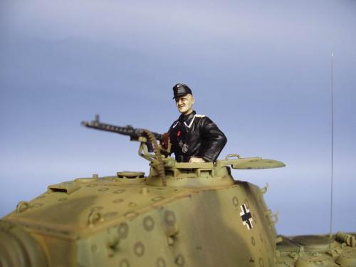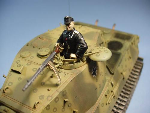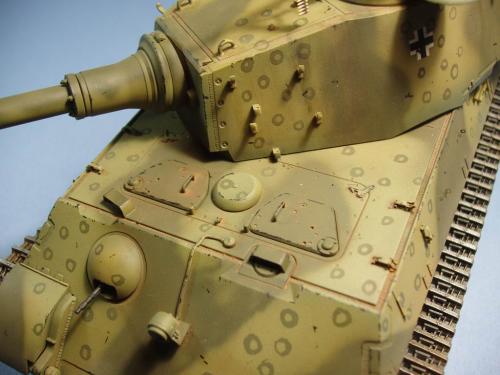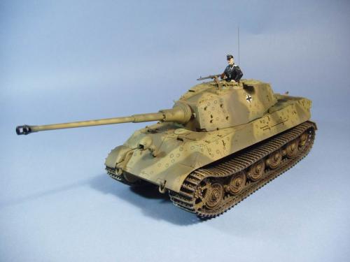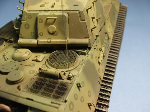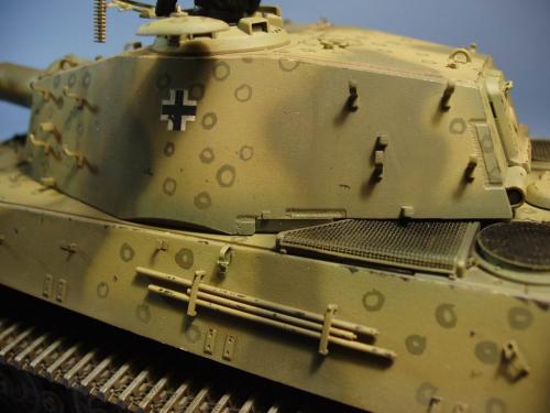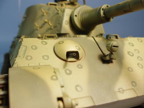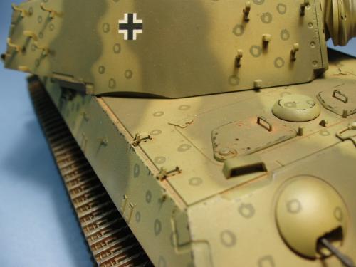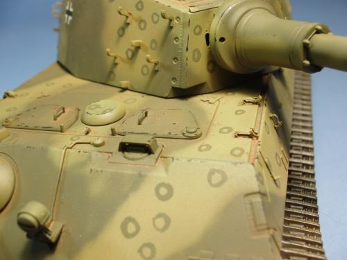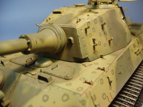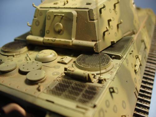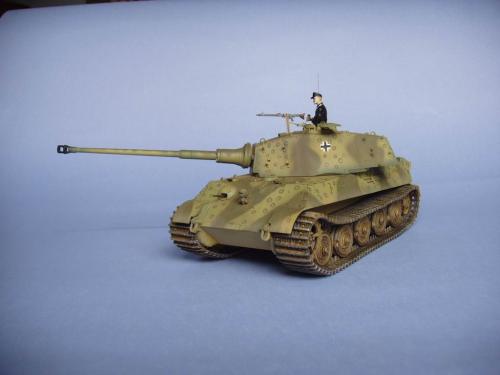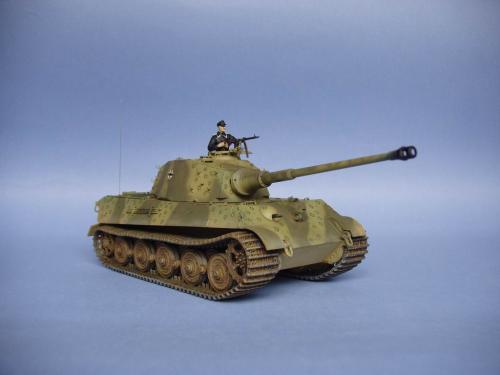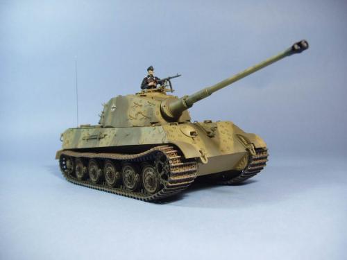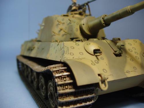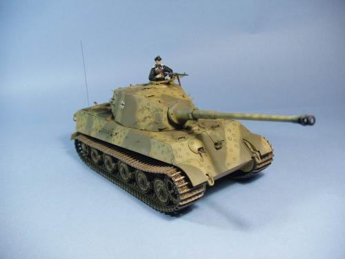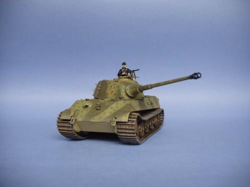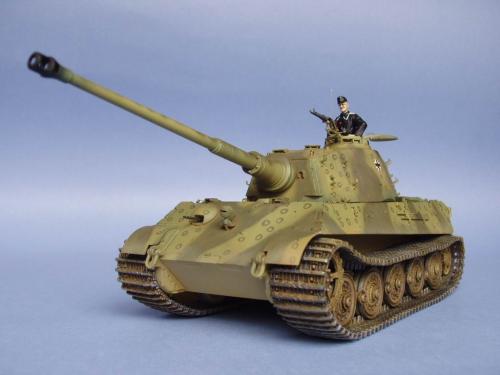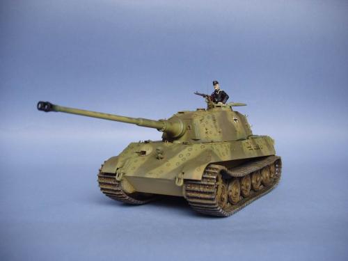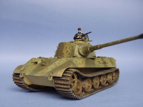 龙的最后期虎王套件加沃雅的德军工具扣制作.新开的模具相当的省事,基本直做.上色采用德军最后的八爪鱼迷彩.主色采用魔王漆,色块喷涂,圆圈手绘.由于实车存在的时间相当的短,没有做过于强烈的旧化.随车工具做成遗失状态.同时配上一名少尉车长.
