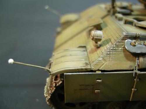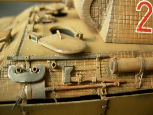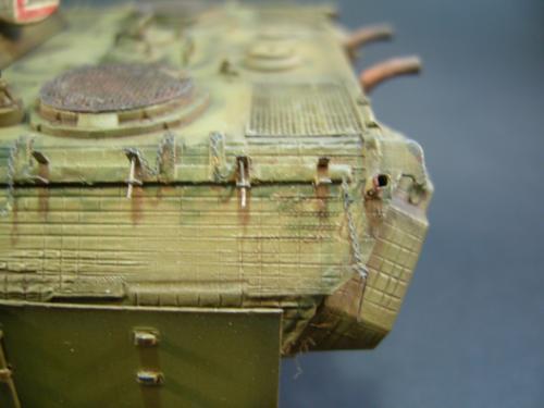 (黑豹A)作品制作改造到位,但对于蚀刻片的处理还需要加强。旧化处理偏红,没有压住整车色彩。如果该作品加强刻画会更好。 |